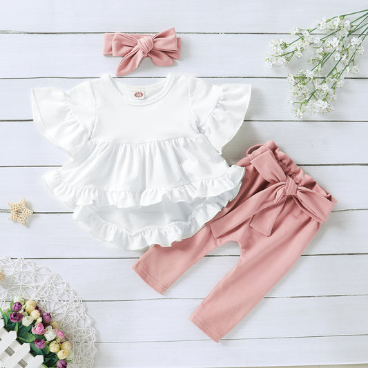 Maglia Volant, Pantaloni con Fiocco e Fascia Coordinata