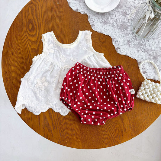Coordinato estivo bambina Blusa ricamata con culotte a pois