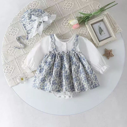 Pagliaccetto estivo neonata con fiorellini e cappellino coordinato
