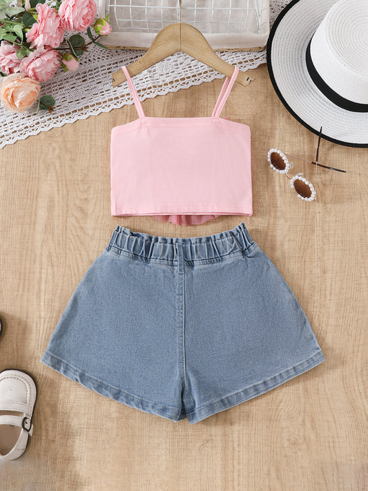 Completo Estivo Bambina – Top con Cuori e Shorts in Jeans
