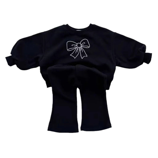 Completo Tuta Bambina "Black Chic" Felpa con Fiocco + Pantaloni