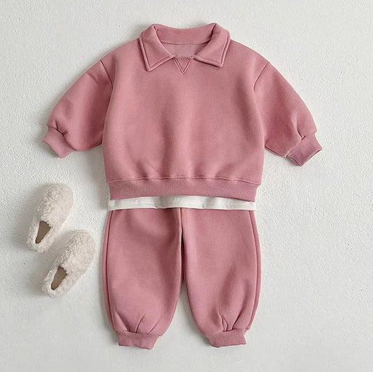 Tuta unisex in Cotone Rosa 2 Pezzi con Colletto a Punta