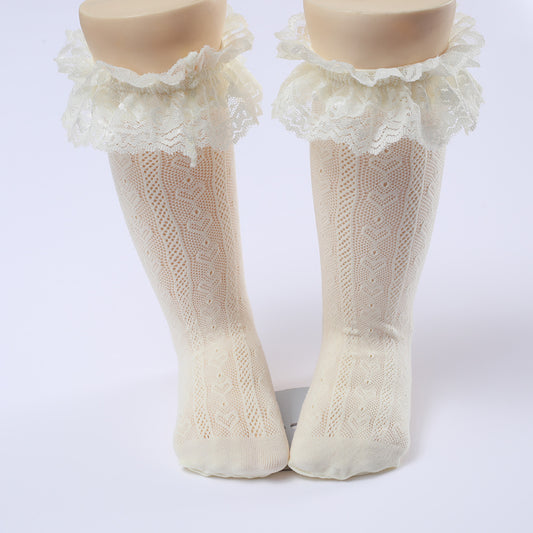 Collant traforati eleganti per bambina – Calze lunghe in cotone morbido