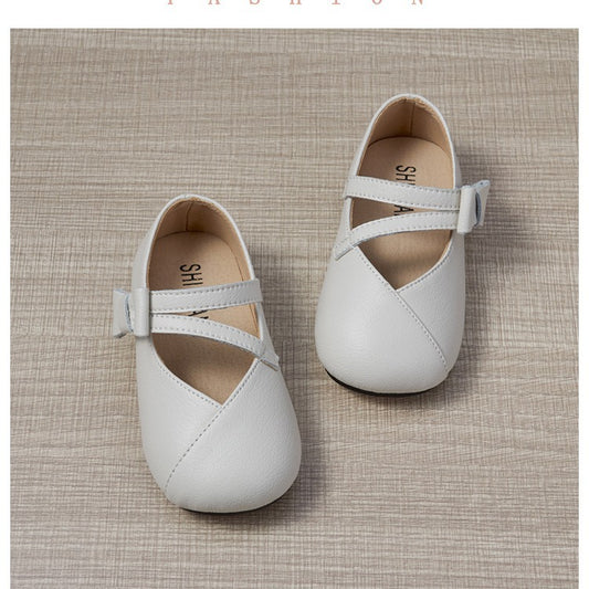 Scarpine Neonato in Ecopelle con Doppio Cinturino e Fiocco