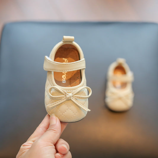 Ballerine Neonato in Ecopelle Trapuntata con Fiocco
