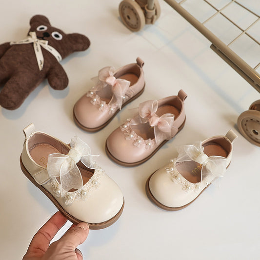 Scarpine Eleganti Bambina con Fiocco e Dettagli di Perle