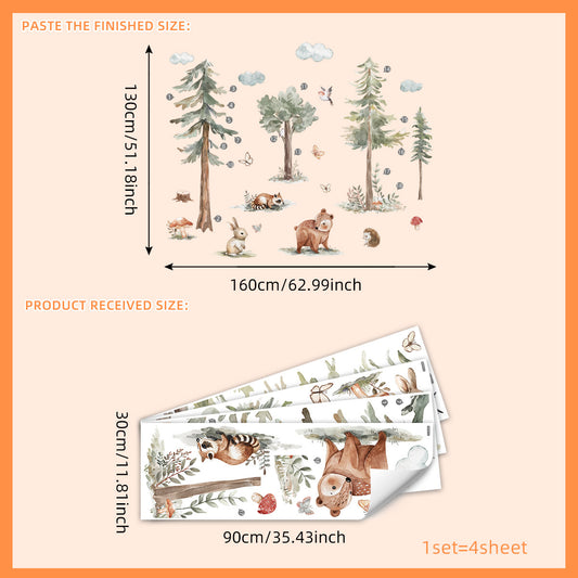 Adesivi Murali Bosco con Animali – Alberi, Orsetto, Coniglio e Farfalle – Decorazioni Cameretta Bambini