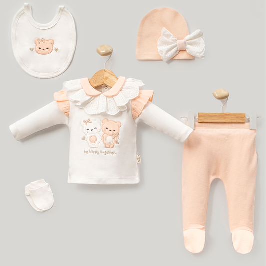 Set Neonato 5 Pezzi in Cotone Beige – Stampa Orsetti