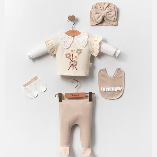 Set Caldo Cotone Neonata/ Bimba Vintage 5 pezzi Beige