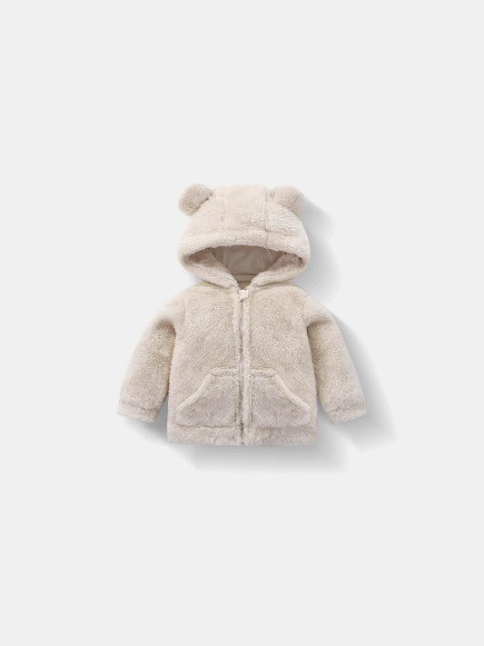 Giacca Peluche Bambino con Cappuccio e Orecchie Orsetto