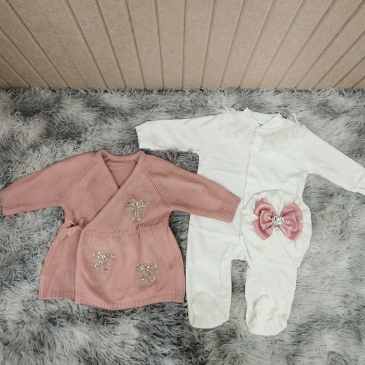 Tutina Completo Invernale Neonato 2 Pezzi con Fiocco e Cappellino – Rosso