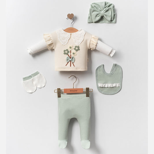 Set Neonata/ Bimba Caldo Cotone Vintage Orsetto 5pz 0-3 mesi Verde