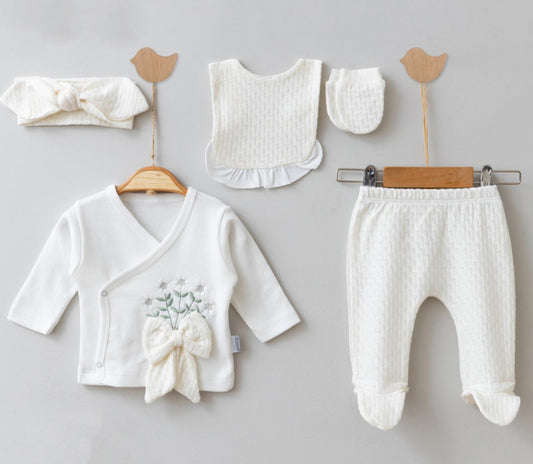 Set Bimba/ Neonata 5 pezzi con Fiocco 100% Cotone bianco