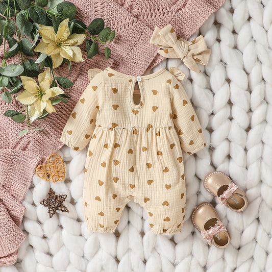 Tutina Neonata/ Bimba in Cotone con Cuoricini Fiocchi e fascia coordinata
