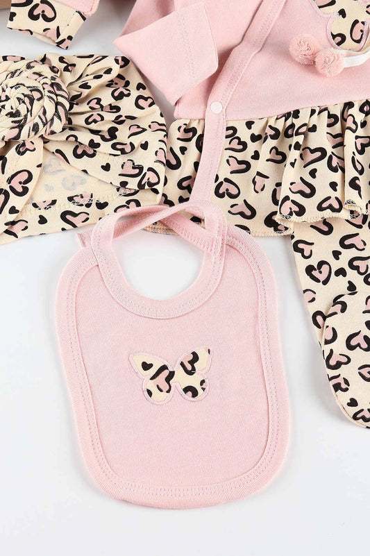 Set Neonata/ Bimba 5 pezzi Cotone Leopardato "Butterfly Chic" Rosa
