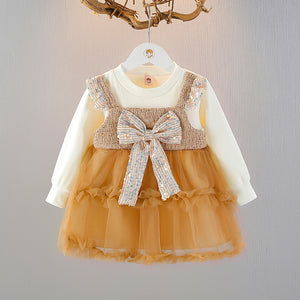 Abito Elegante Bambina con Tulle e Fiocco di Paillettes