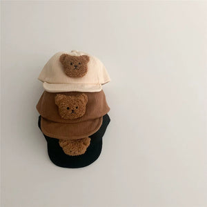 Un accessorio irresistibile per i più piccoli! Questo cappellino in tessuto a costine è decorato con un dolcissimo orsetto in peluche 3D applicato sul davanti. Perfetto per aggiungere un tocco tenero e stiloso a qualsiasi outfit.
