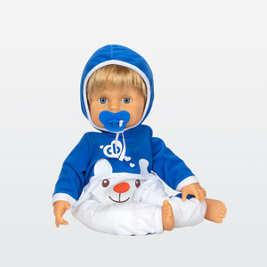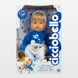 Cicciobello ha bisogno di tutto l’amore della sua mamma! Prenditi cura di lui, riempilo di coccole e cullalo tra le tue braccia. Quando piange, calmalo dandogli il ciuccio e stringilo forte in un caldo e confortevole abbraccio. Tenerezze accoglienti come il suo nuovo abbigliamento da orsetto polare.
