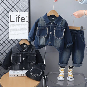 Completo 2 pezzi Denim Bimbo con Giubbino Sfrangiato – Autunno/Inverno