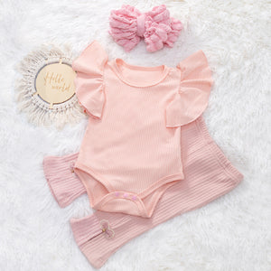Completo 3 Pezzi Bimba Body Volant + Leggings + Fascia