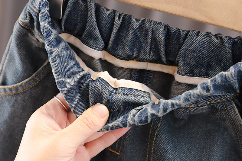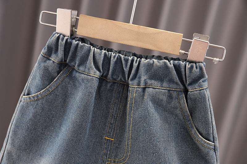 Dai un tocco di creatività al guardaroba del tuo bambino con questo completo casual dallo stile moderno! Include una giacca con effetto dipinto e scritte artistiche, una T-shirt bianca a contrasto e jeans dal taglio classico con risvolti. Realizzato con materiali comodi e resistenti, è perfetto per uscite informali, giornate di gioco o occasioni speciali. Un look unico per piccoli trendsetter! 🎨👕👖✨