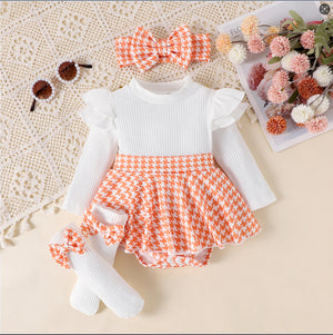 Completo Bambina 4 Pezzi Vestitino, Calzini e Fascia