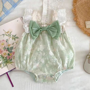 Un must-have per il guardaroba della tua piccola principessa! Queste tutine estive sono realizzate in tessuto leggero e traspirante, con un design romantico caratterizzato da fiocchi oversize e dettagli in pizzo sulle spalline. Disponibili in due delicate tonalità: rosa pastello e verde tenue, ideali per ogni occasione, dalle passeggiate ai servizi fotografici.