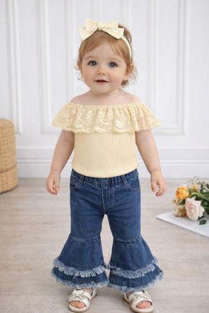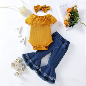 Completo bimba 3 pezzi jeans+maglietta+fascia