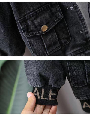 Completo bambino in denim nero con giacca e pantaloni cargo – Stile Urban
