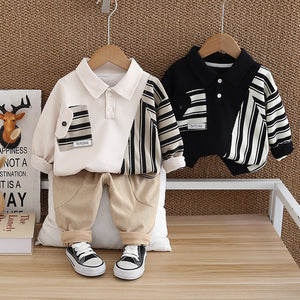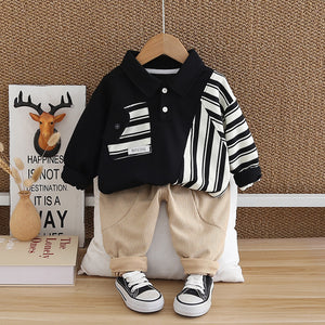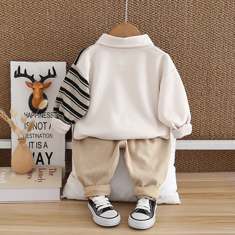 Completo Casual Bambino Maglia Polo Patchwork e Pantaloni in Velluto