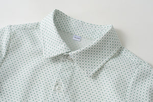 ✔ Set 4 pezzi: gilet sartoriale, camicia a maniche lunghe con fantasia micro pois, pantaloni e papillon abbinato.