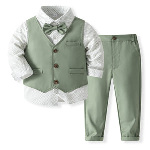 Completo Elegante 4 Pezzi per Bambino – Gilet, Camicia, Pantaloni e Papillon