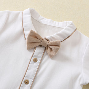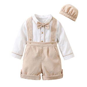 Completo Elegante 3 Pezzi Bimbo Camicia + Pantaloncini con Bretelle + Cappellino
