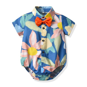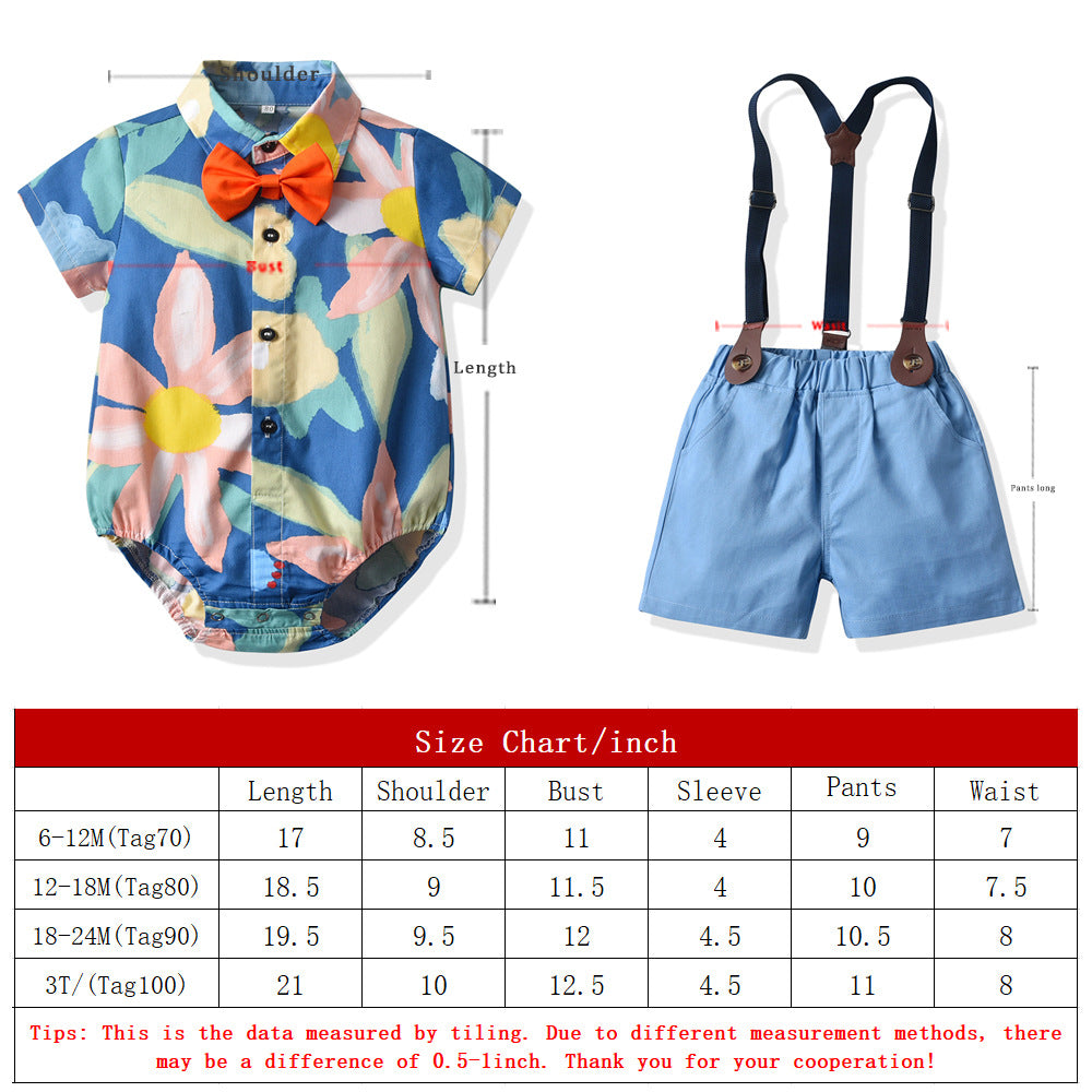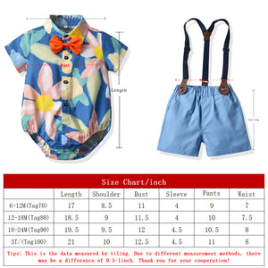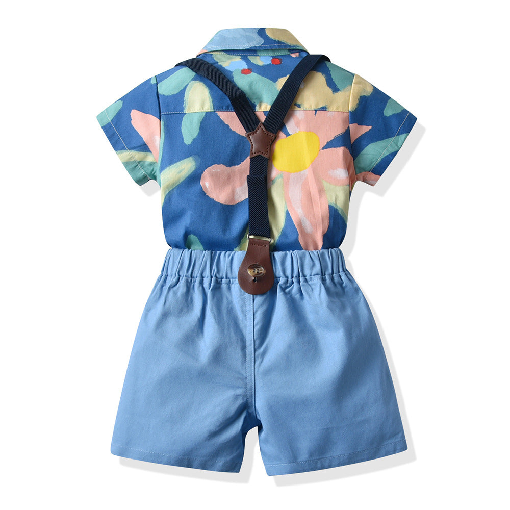 Completo Estivo 3 Pezzi per Bambino – Body Camicia Floreale, Pantaloncini con Bretelle e Papillon