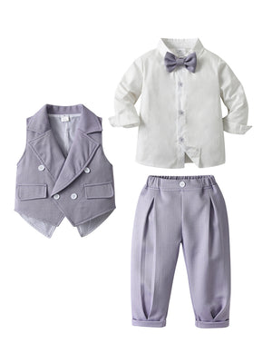 Completo elegante bambino 3 pezzi - Camicia, gilet e pantaloni lilla con papillon