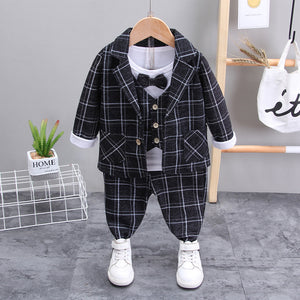 Home Completo elegante bambino con giacca, gilet, pantaloni e papillon – fantasia a quadri