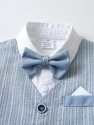 Home Completo Elegante da Neonati con Papillon e Gilet Azzurro