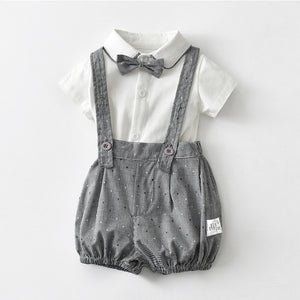 Completo elegante per neonato con papillon e bretelle – Stile classico e raffinato