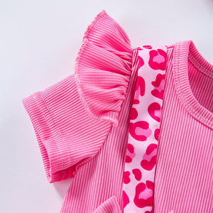 Completo Neonata Rosa con Gonna Leopardata e Fascia Coordinata