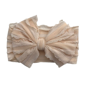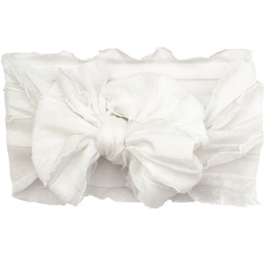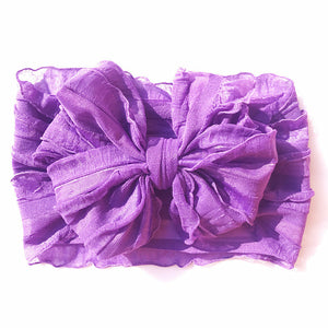 Deliziose fasce per neonata con maxi fiocco in tulle arricciato, disponibili in una palette vivace e romantica di colori: rosso, viola, senape, panna, rosa, bianco, nero e grigio.