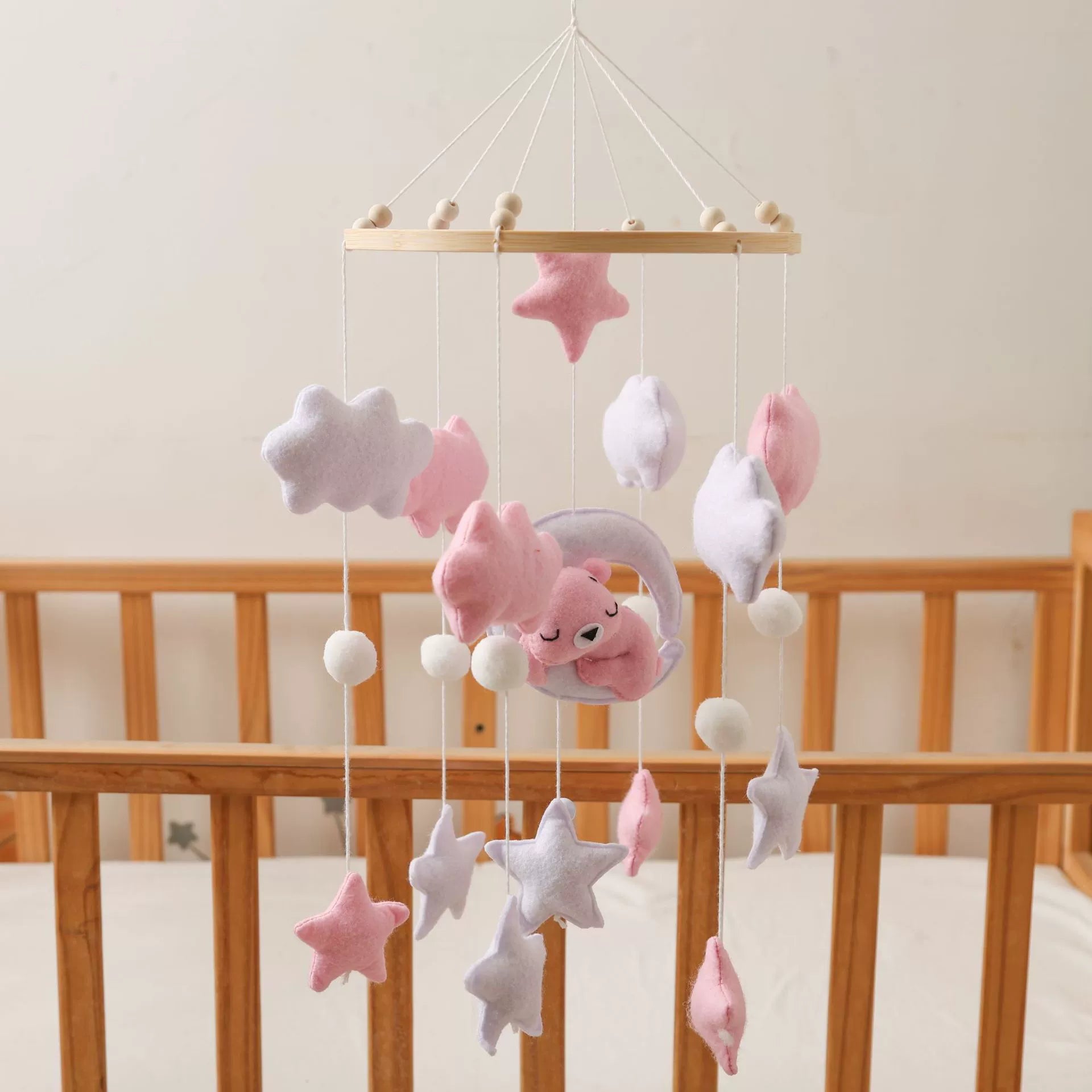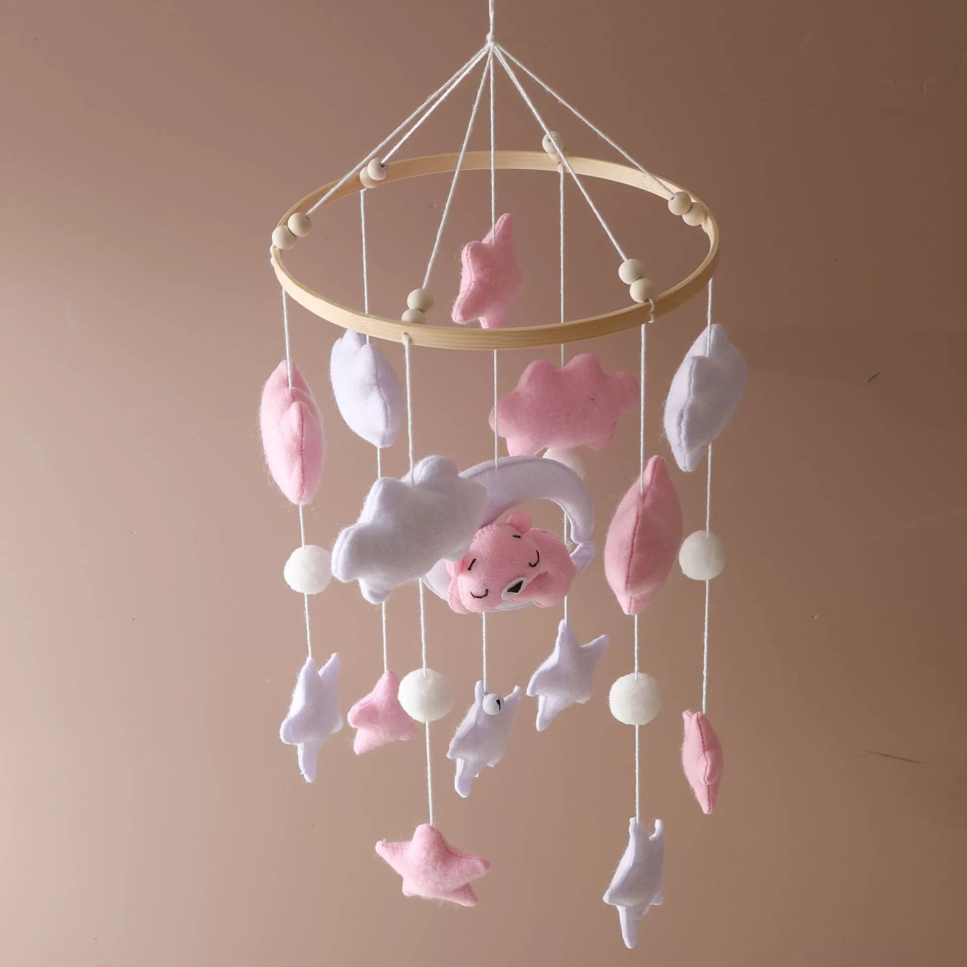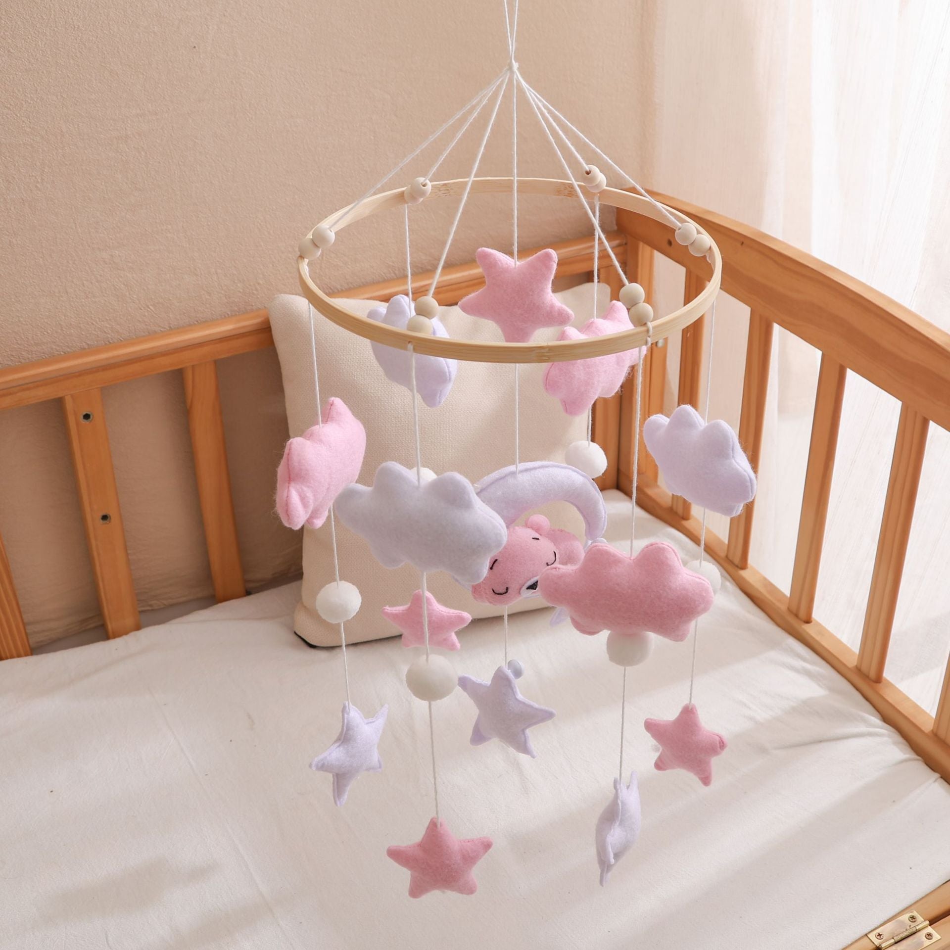 Home Giostrina Neonata in Feltro - Nuvole, Stelle e Luna (Rosa e Lilla)