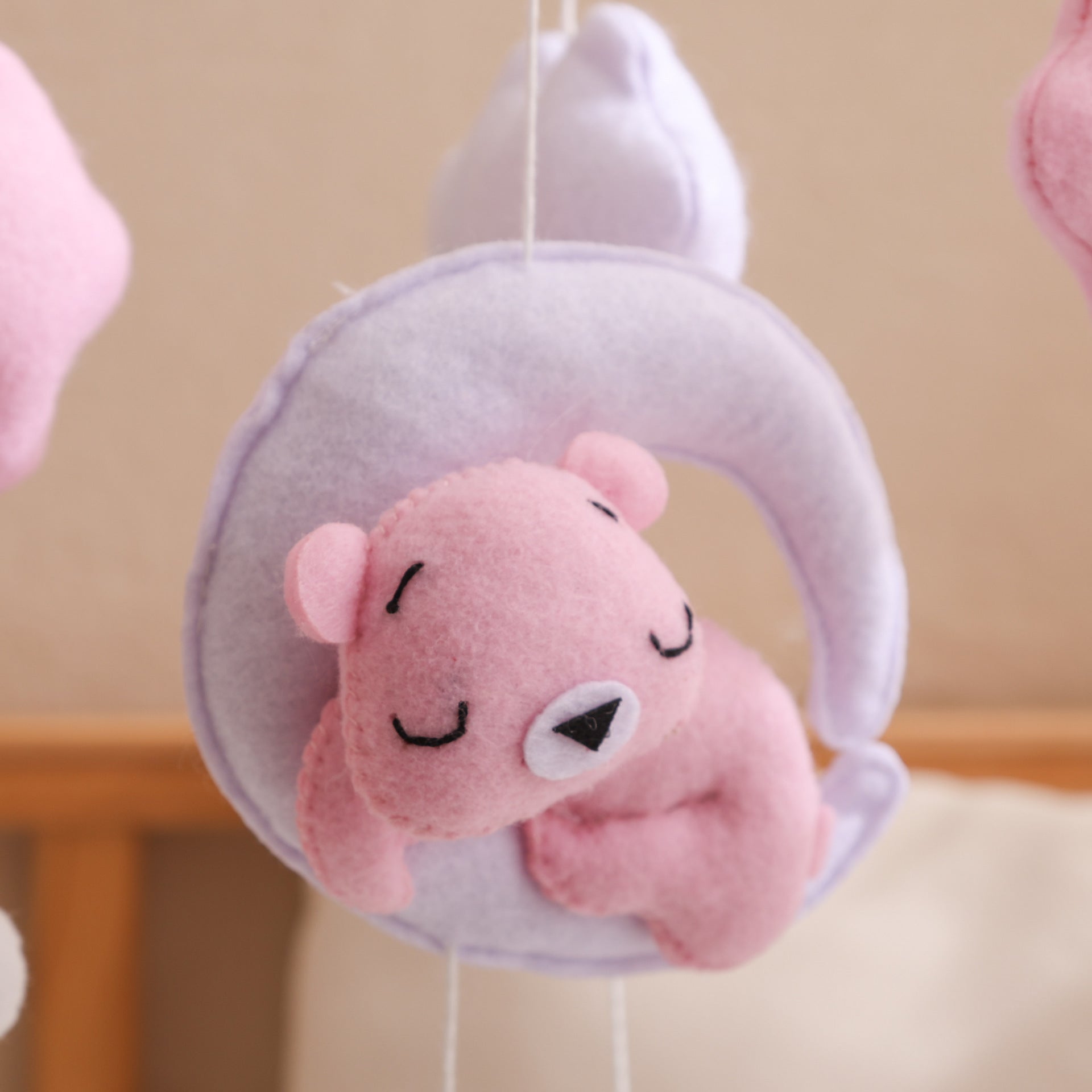 Giostrina Neonata in Feltro - Nuvole, Stelle e Luna (Rosa e Lilla)
