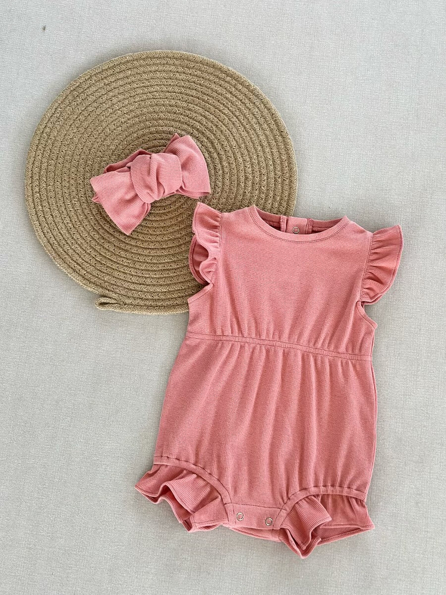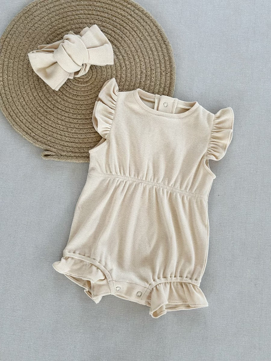 Pagliaccetto Bimba con Volant + Fascia Coordinata Stile Elegante e Naturale