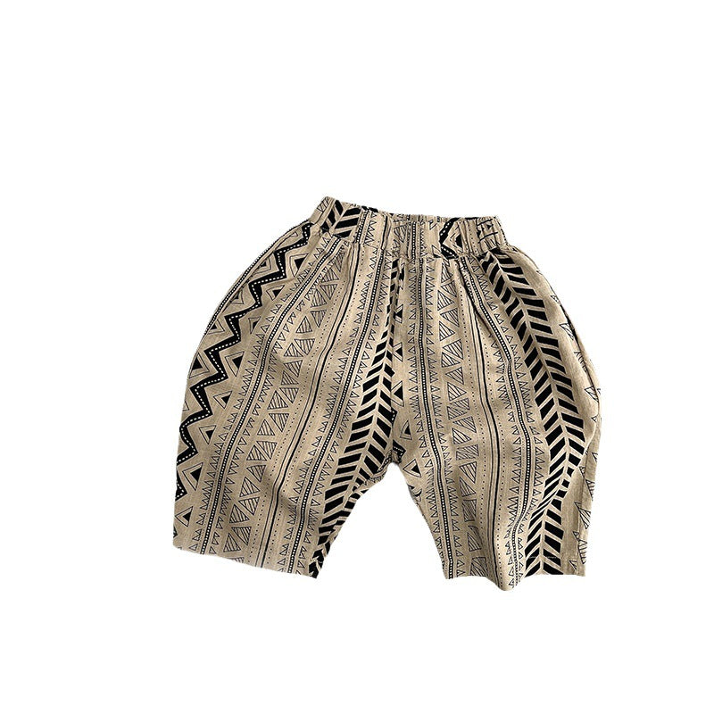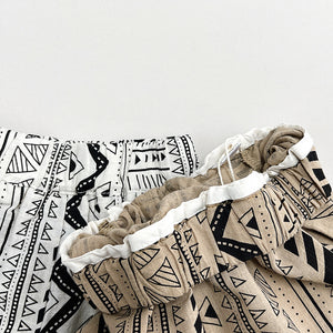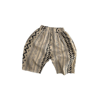 Pantaloni larghi e confortevoli, perfetti per la stagione estiva. Realizzati in tessuto leggero e traspirante, presentano una vivace fantasia tribale geometrica su uno sfondo beige che aggiunge un tocco etnico al tuo look. La vita elastica garantisce una vestibilità comoda e adattabile, rendendoli ideali per ogni occasione, dal tempo libero alle giornate in spiaggia. Un capo versatile e originale, pensato per chi cerca stile e praticità.