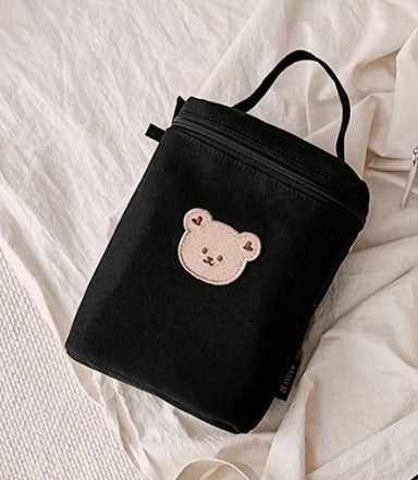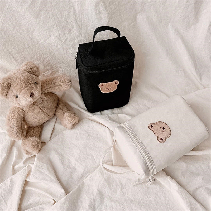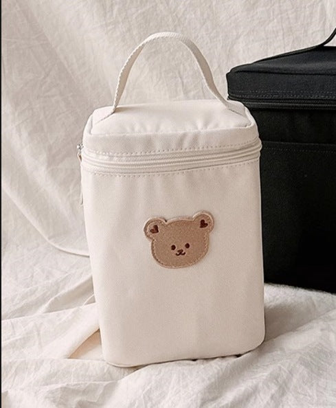 La borsa termica con ricamo orsetto è perfetta per mantenere caldi o freschi biberon, merende e pappe durante le passeggiate.