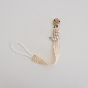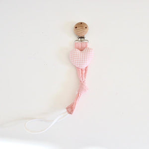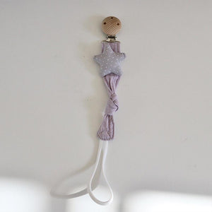 Il Portaciuccio in Stoffa e Legno è un accessorio elegante e funzionale che aiuta a mantenere il ciuccio sempre pulito e a portata di mano. Realizzato con morbida stoffa intrecciata e clip in legno naturale, questo portaciuccio si distingue per il suo design unico con simpatici personaggi in tessuto come stelle, cuori, animali e altri dolci dettagli.