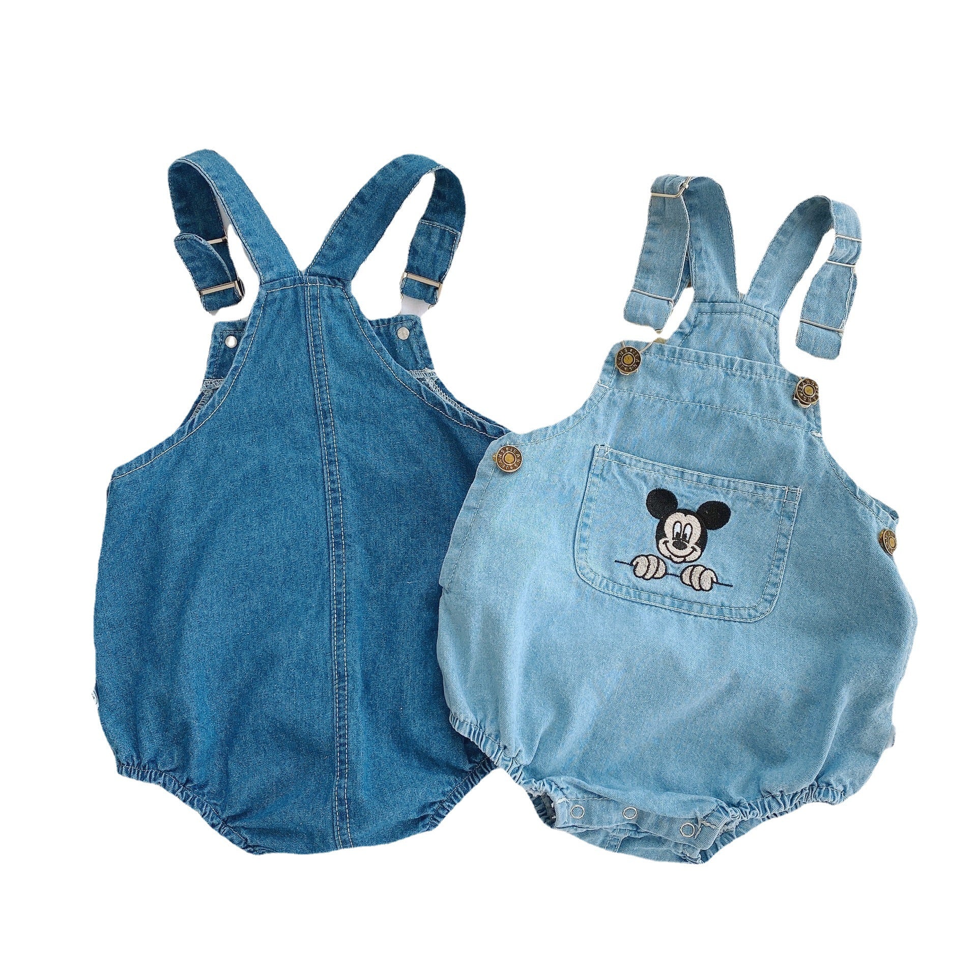 Salopette Neonato in Denim - Design Unisex con Ricamo Topolino