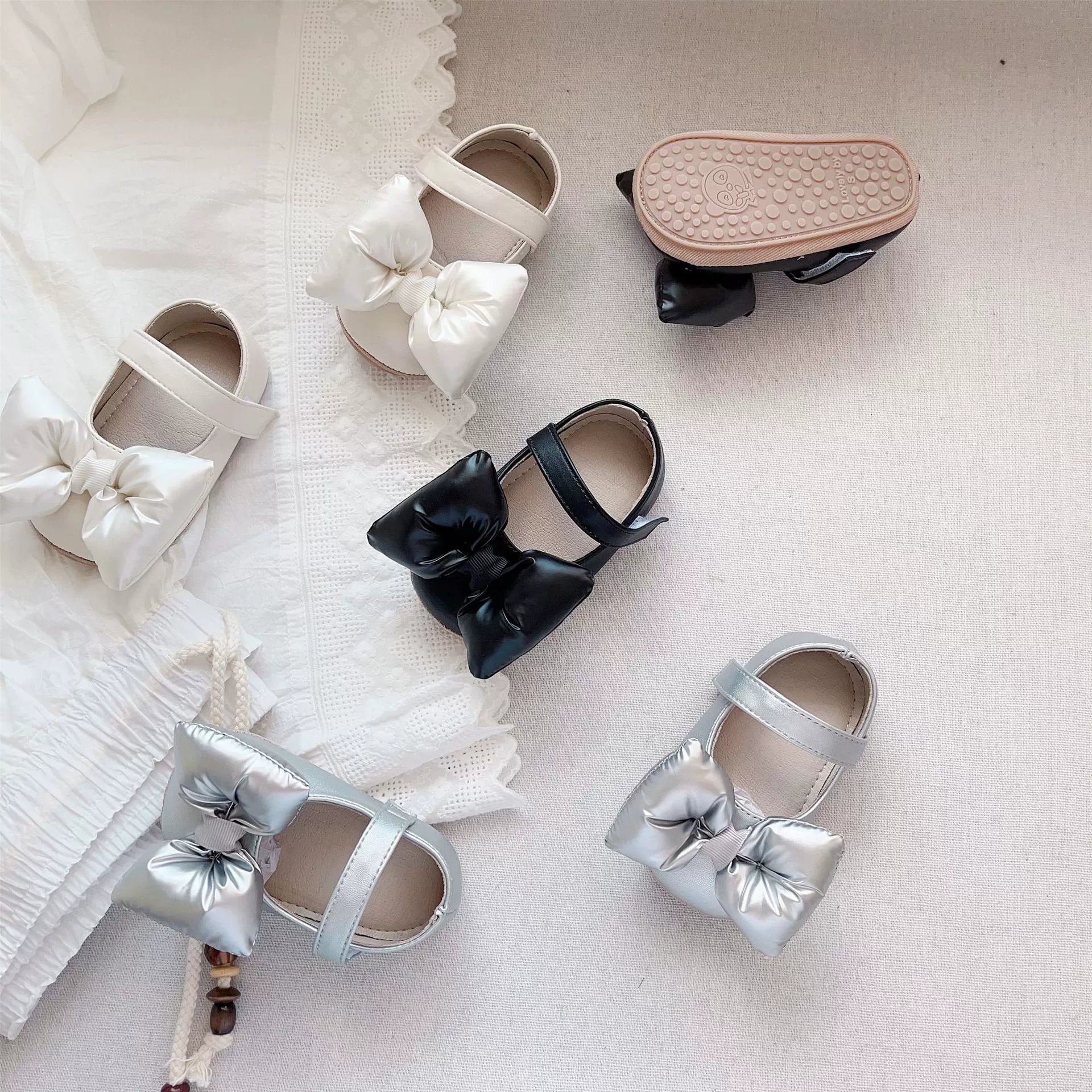 Scarpine Neonata con Maxi Fiocco – Suola Antiscivolo Elegante