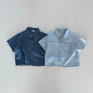- Camicia in denim a maniche corte con taschino frontale, da indossare aperta o chiusa