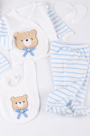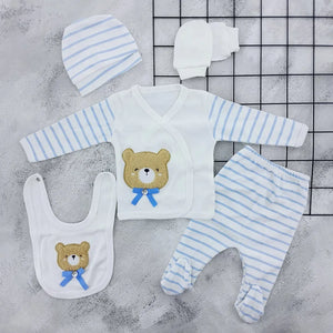 Set Neonato/ Bimbo in cotone - Completo 5 Pezzi con Orsetto Ricamato 🧸